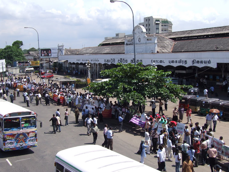 All assembled in front of the Fort Railway Station at 12.30, and staged a protest. Some stared to shout slogans for media freedom, while women rights activists started to sing slogans. After one hour all stared to move towards the World Market, and came back to the Fort Railway Station.The attention of the protest was caught by vendors, passengers and passers-by.